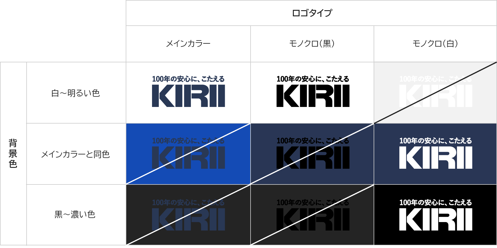 - 株式会社桐井製作所(以下「当社」といいます)は、使用者が当社コーポレートブランドロゴ(以下「当社ロゴ」といいます)を使用するにあたり遵守すべきルール及びガイドラインを定めています。
